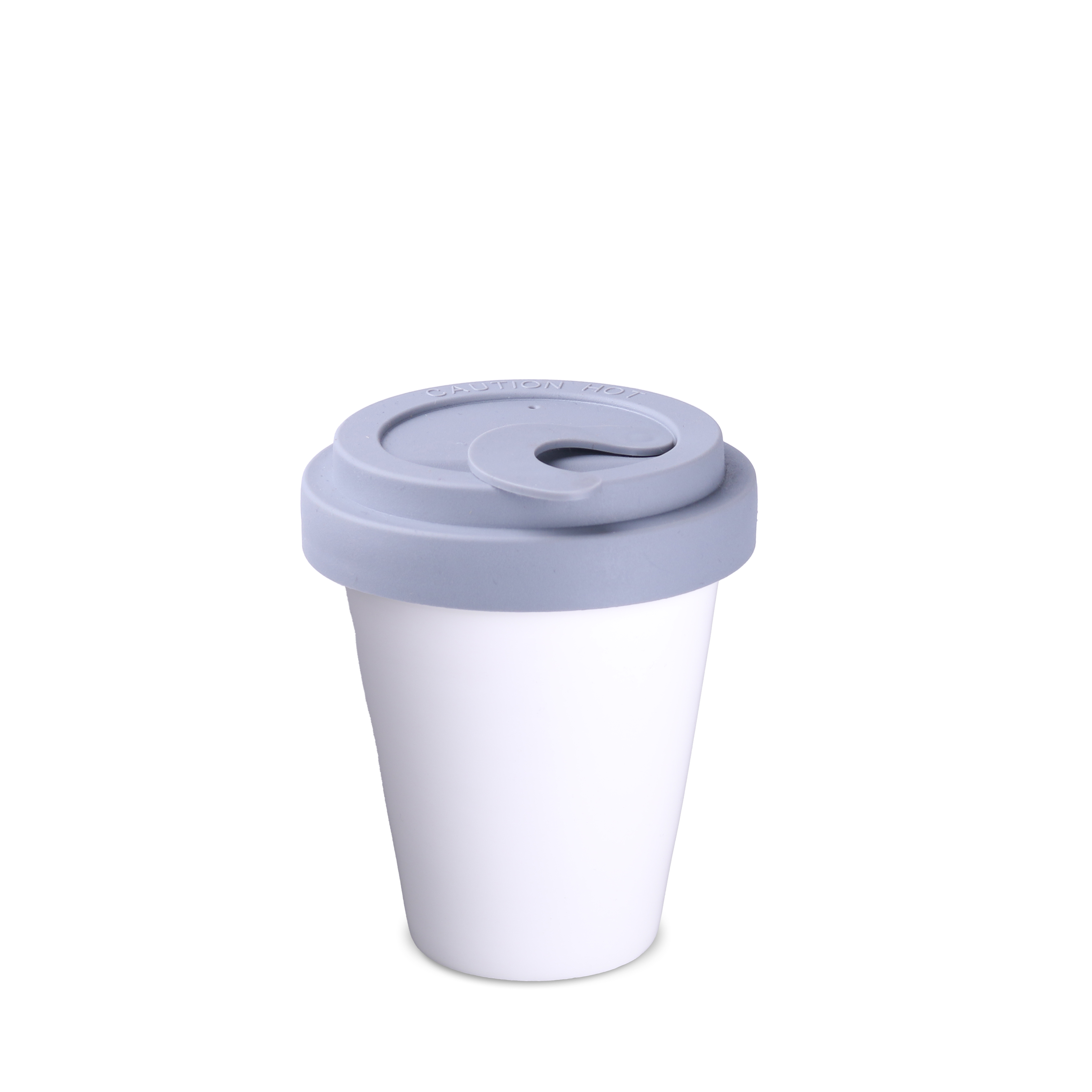 A practical porcelain mug with a polymer lid and a stopper to prevent accidental spillage. Thanks to its rare double-walled porcelain structure, this mug offers enhanced thermal insulation. The mug body is available in white and satin black. The lid is available in the following colors: white, orange 021C, Cool Gray 7, navy blue 294C, brown 4695C, black, pink 4064C, blue 2144C, eucalyptus 5493C, desert sand 2310C.